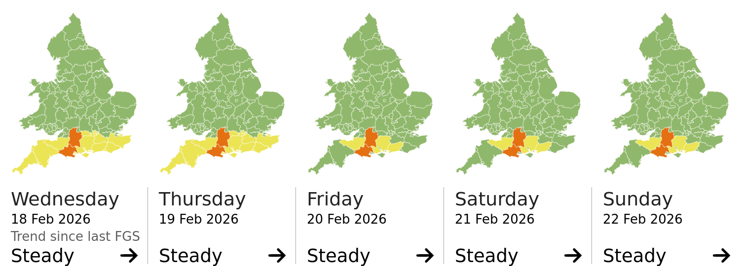 Additional information: High groundwater levels in Dorset and Wiltshire.